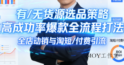 课程来自子鹏老师的淘宝私家班。课程聚焦三大进阶实战模块:“有/无货源选品策略”打通爆款源头;“高成功率爆款全流程打法”系统解析从人群、计划搭建到成本优化的深度运营;“全店动销与淘短/付费引流”提供店铺与流量层面的增长双引擎。