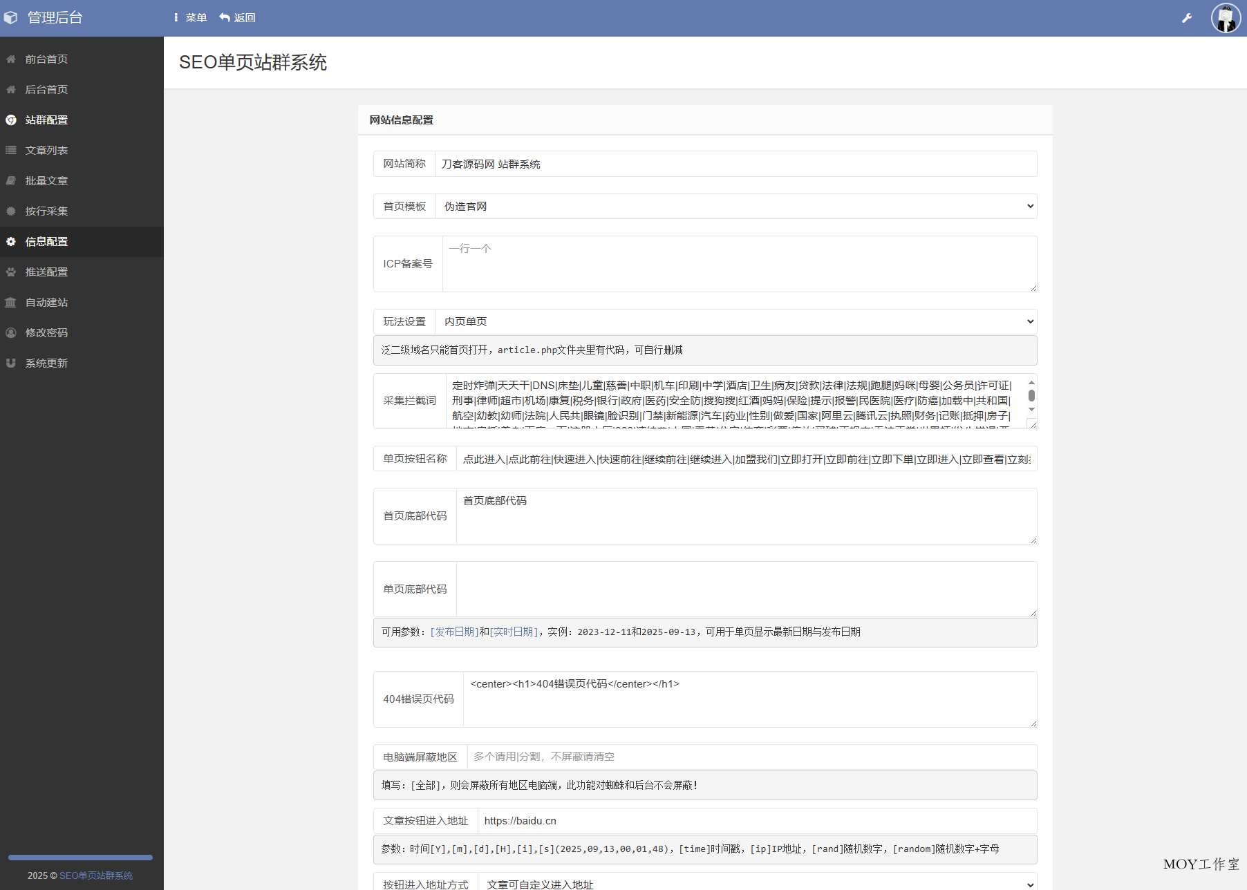 SEO站群系统源码 免授权版 单页关键词排名网站源码