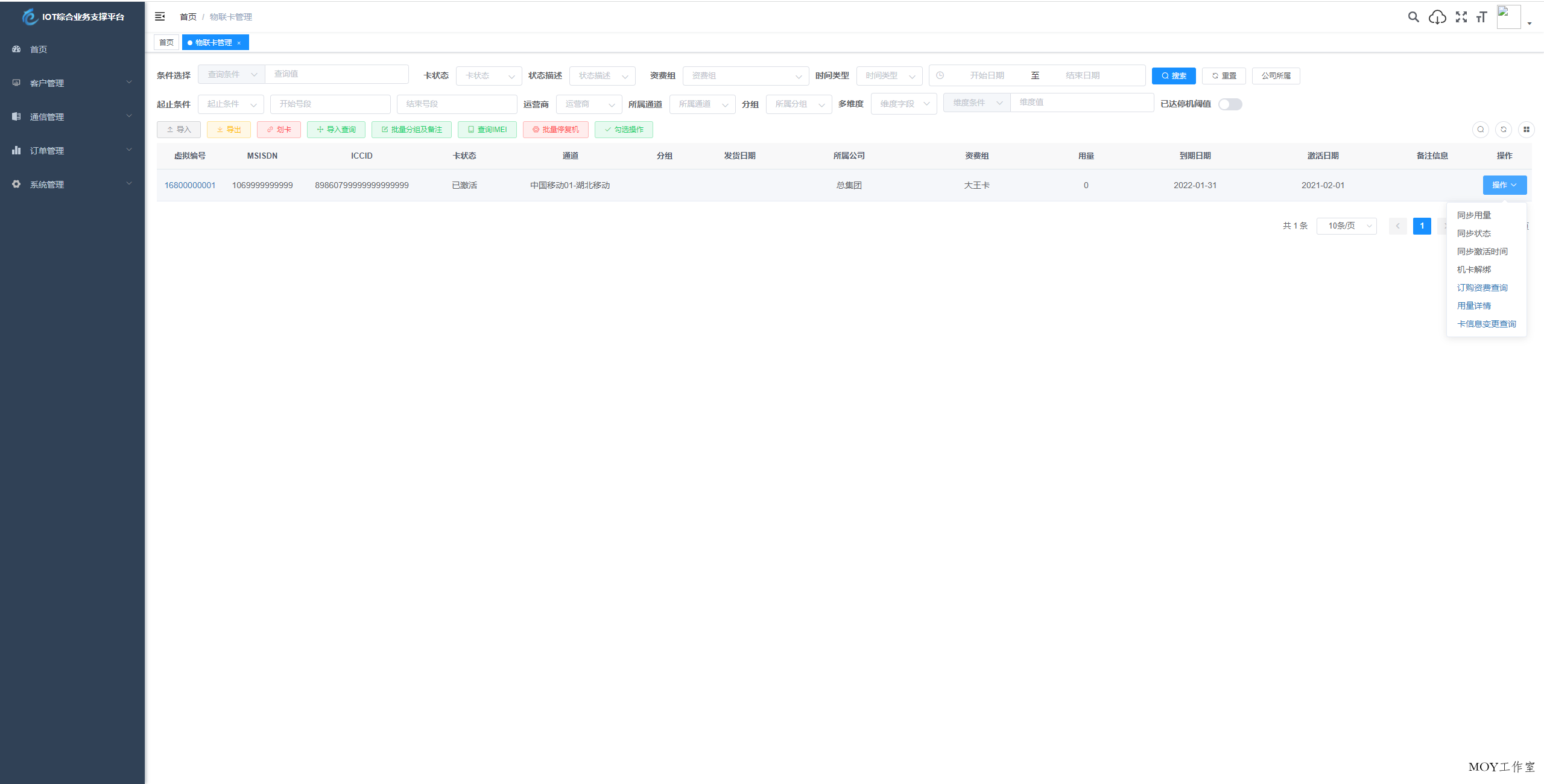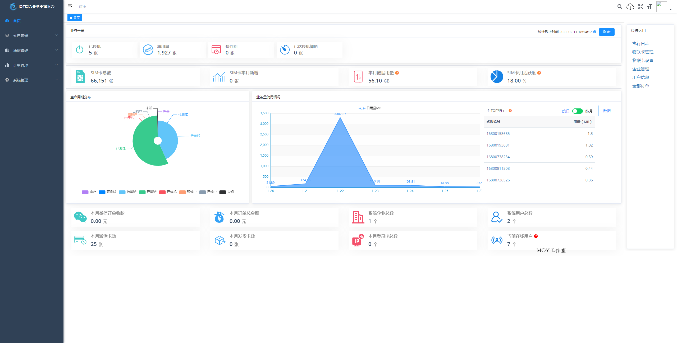 物联网管理系统源码 号卡智能管理平台 轻量级物联网综合业务支撑平台