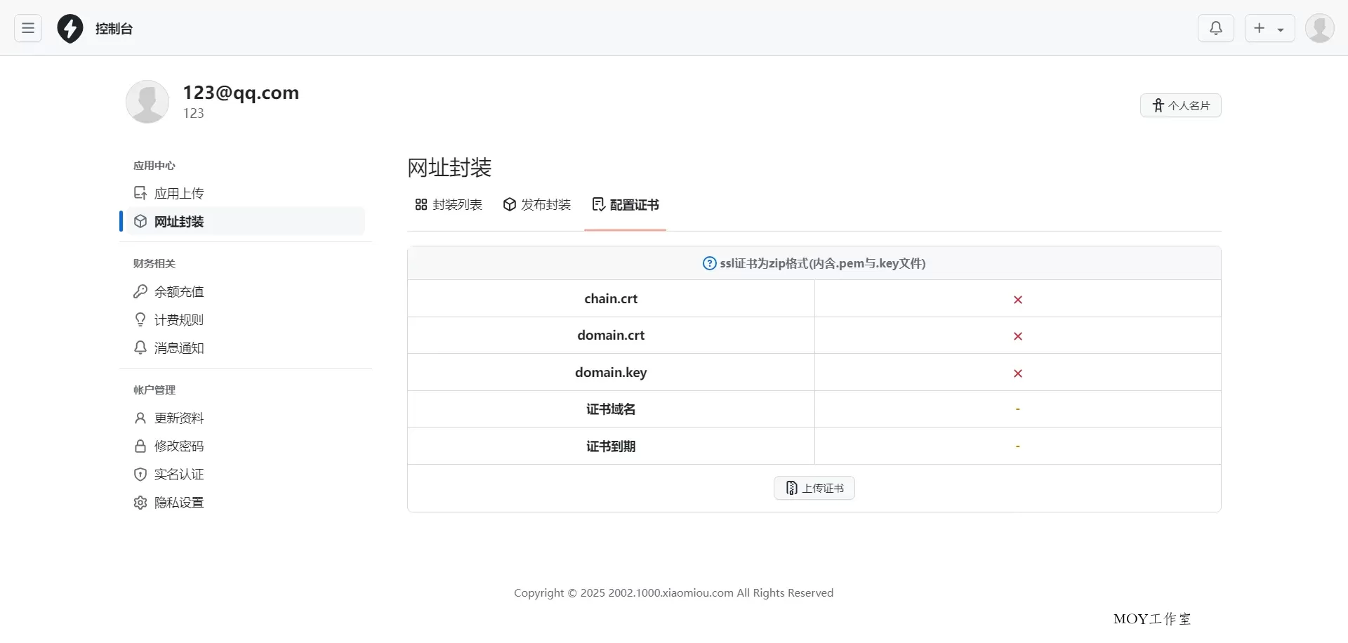需要上传签名证书,安卓测试了一下不行!自行研究吧!