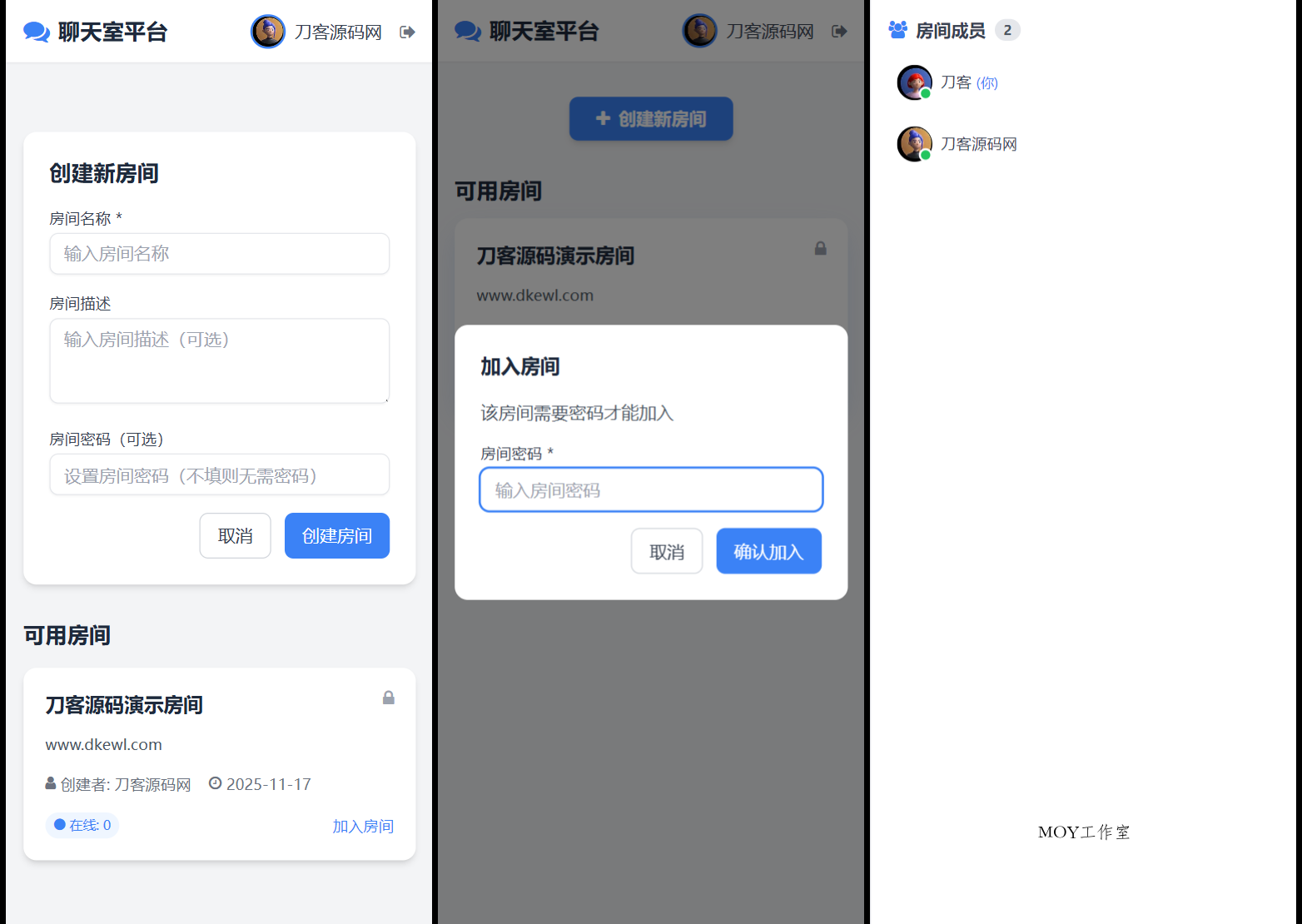 房间管理:支持创建带密码保护的群聊房间,加入房间需要验证